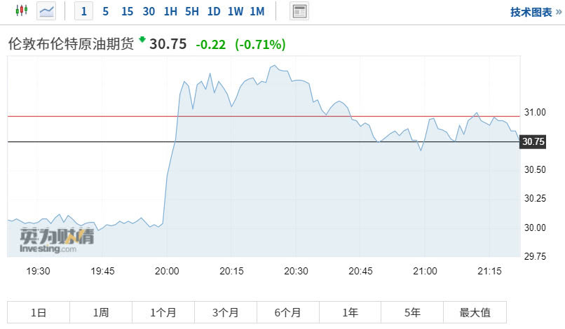 油价冲高回落,因沙特宣布自愿性的单方面减产每天100万桶,目标是在6月将每天原油产量减少到750万桶。WTI原油期货涨0.2%,报24.78美元/桶。布伦特原油期货跌0.7%,报30.75美元/桶。