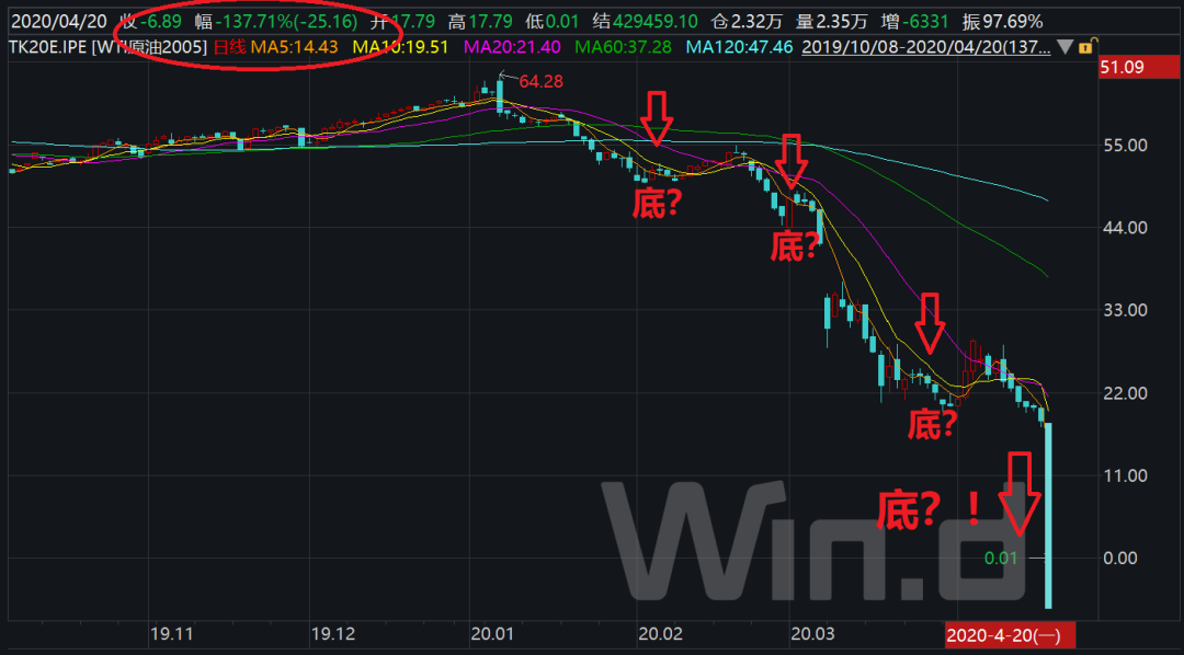 当然正常操作下,命运掌握在自己的手中,但是不幸的是总有令事情雪上加霜的捣蛋鬼。在这场原油与资产的浩劫中,中行原油宝就是这个捣蛋鬼,没有及时平仓和移仓,更没有办法领取大量的原油,这导致中行在21日最后一刻不得不帮韭菜客户在资本市场上撒美金,把油价砸到-37美元一桶,买一桶油倒贴你37美金,百年中行的招牌这次可是砸得死死的。你以为跌到零就是地板了吗?错了,地板下还有十八层地狱!最郁闷的是,中行、工行、建行都停止原油交易以后,原油期货市场迎来大涨,相当于很多投资者是底部亏损出来。