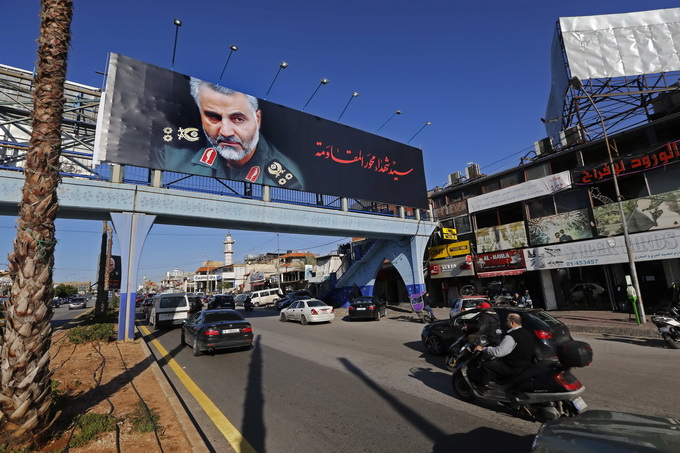 1月6日在黎巴嫩贝鲁特街头拍摄的苏莱曼尼肖像。新华社记者 比拉尔·贾维希 摄