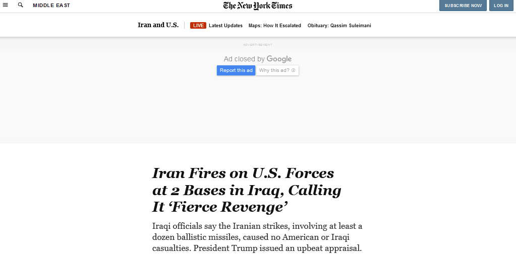 《纽约时报》评论说,此次空袭是德黑兰发出的一个明确信号:他们有意愿且有能力打击美国在伊拉克的(军事)目标。