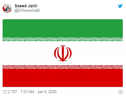伊朗首席核谈判代表赛义德·贾利利模仿特朗普,在社交媒体“推特”发表推文,内容是一面伊朗国旗。