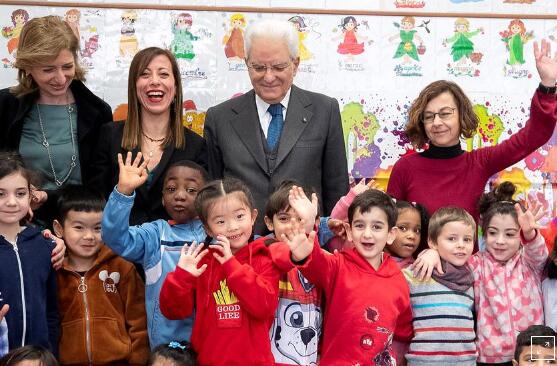 2月6日,意大利总统马塔雷拉访问一所罗马学校。图自路透社