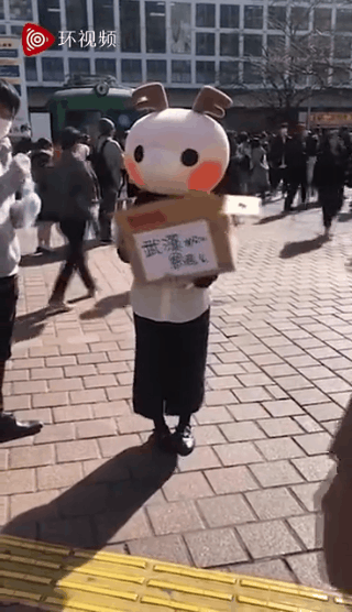 近日,一段“华人女孩东京街头发口罩”的视频,在中日社交媒体上被广泛转载。视频中,这名女孩头戴小鹿头套,手捧写有“来自武汉的报恩”的纸箱,和小伙伴们一起走上东京涉谷的十字街头,为日本民众免费赠送爱心口罩。