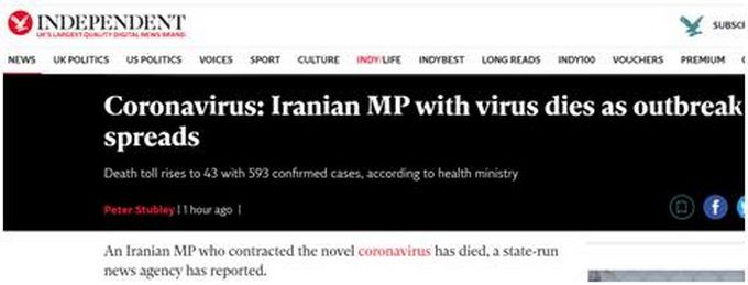 据英国《独立报》29日最新报道,伊朗国营媒体称,一名感染了新型冠状病毒的伊朗议员当天去世。