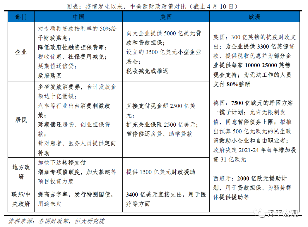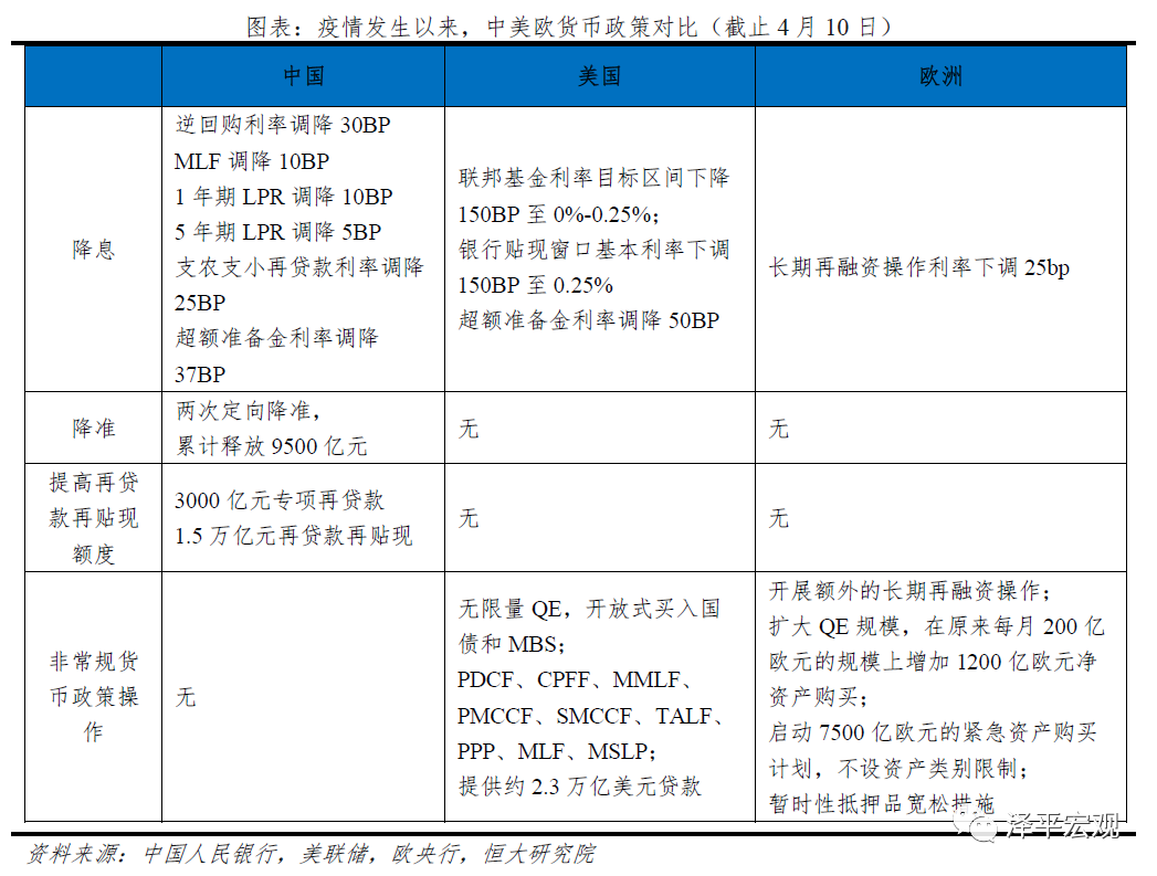 3)疫情发生以来,中国货币政策呈现三阶段特征:2月货币纾困抚平流动性、3月平稳观察、3月底开启加码刺激需求。2月,政策重心是“纾困”而非刺激需求,核心在于稳定实体部门现金流、减轻偿债压力,稳定预期。3月,政策进入观察期,一是观察海外疫情发展及对国内冲击程度,二是观察前期政策效果。3月末以来,逆周期调节力度加码,核心是对冲内外需疲软的负面冲击,配合财政政策发力。