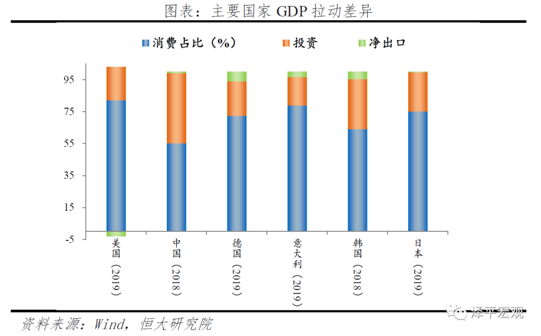 第三,经济结构不同。美国以消费为主,美国2019年GDP结构中,消费占比高达82%,投资仅占20.9%,叠加大选政客有买选票的动机,因此美国货币财政政策直接直升机撒钱,美联储购债直接给企业发钱缓解流动性,财政部直接向居民发放现金刺激消费。
