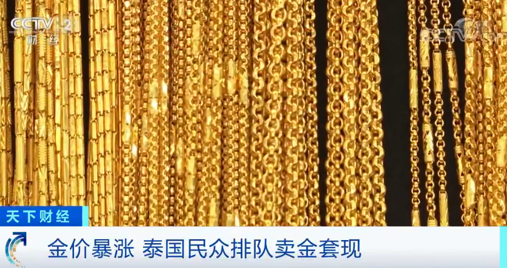 总台记者 骆魏:泰国曼谷的唐人街——耀华力路有很多金店,新冠肺炎疫情让曼谷的很多街道都非常冷清,但是由于金价上涨,这边的金店却异常火爆,很多民众一早就过来排队,他们想要趁着这一拨行情出售黄金套现。