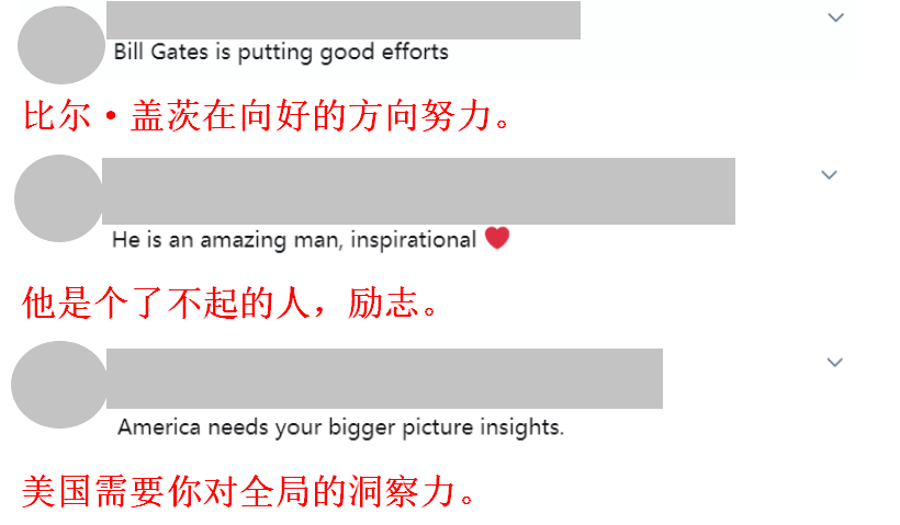 当美国有政客试图挑拨舆论,向中国“甩锅”时,盖茨也多次站出来,为中国仗义执言。