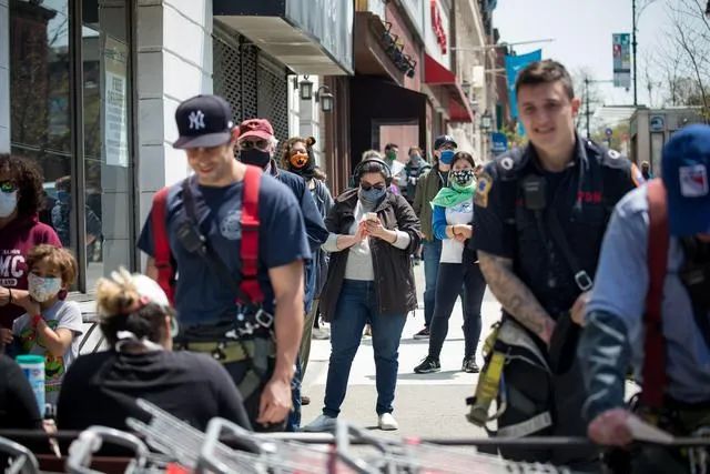 4月25日,人们在美国纽约布鲁克林区一处新冠抗体检测点外排队等待检测。图源:新华社