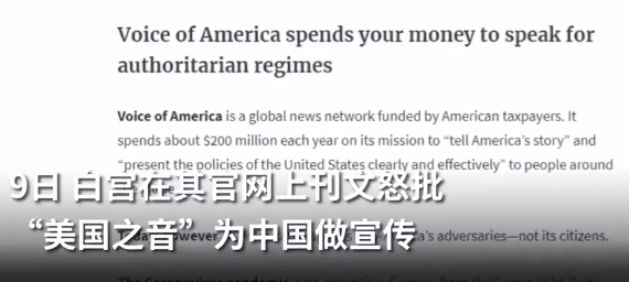 当地时间4月9日,美国白宫在其官网上发布的每日简报中罕见地批评美国之音(VOA),指称其“花费美国纳税人的钱,但却为中国等进行宣传”。原因是美国媒体VOA赞扬了中国为抗击新冠病毒在武汉采取的“封城”措施,并在社交网站上发布了武汉“解封”当晚的灯光秀等相关报道。