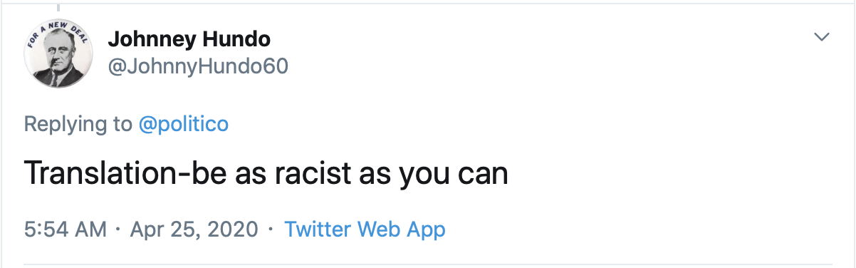 网民:“替他们翻译一下:尽你所能地成为种族主义者。”↓↓↓