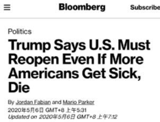 • 特朗普:美国应重启经济,即使会导致更多人死亡