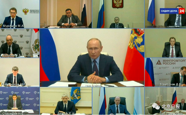 当地时间5月6日,俄罗斯总统普京与俄政府有关部门负责人和地方长官召开视频会议。会上,普京听取了相关部门负责人以及俄联邦消费者权益保护和公益监督局局长波波娃和俄罗斯国务委员会抗疫工作组负责人、莫斯科市长索比亚宁关于逐步解除限制性措施的汇报。