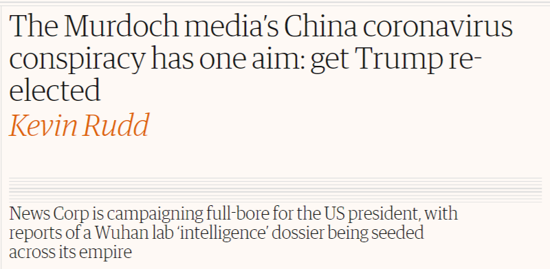 △《卫报》文章:默多克旗下新闻集团媒体的“病毒阴谋论”的唯一目的:帮助特朗普连任