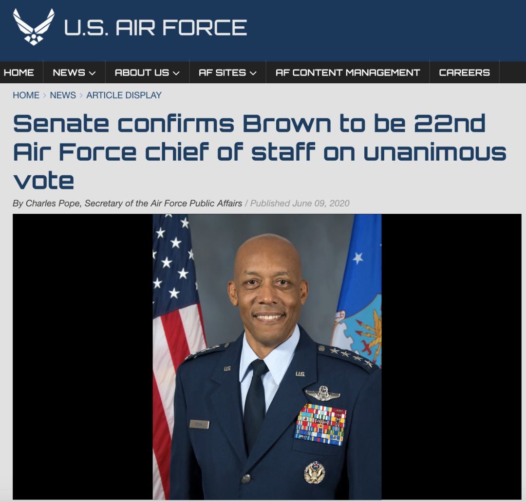 一名黑人将军成为美国空军最高指挥官 长安街知事此前介绍过