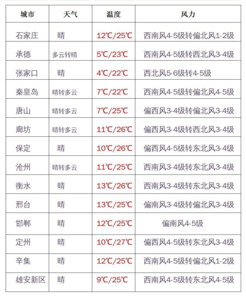 预报来源:河北省气象台