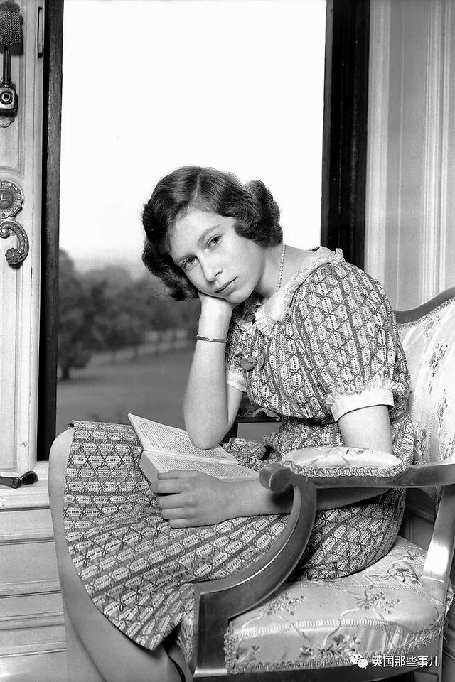 1940年6月22日,伊丽莎白身穿印花连衣裙,在温莎城堡中读书。