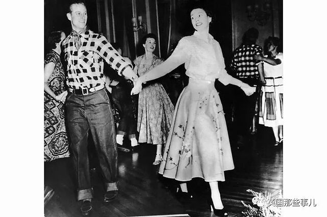 1951年10月17日,伊丽莎白和菲利普在加拿大渥太华,身着当地流行的服装参加舞会。