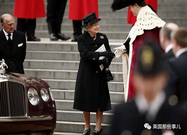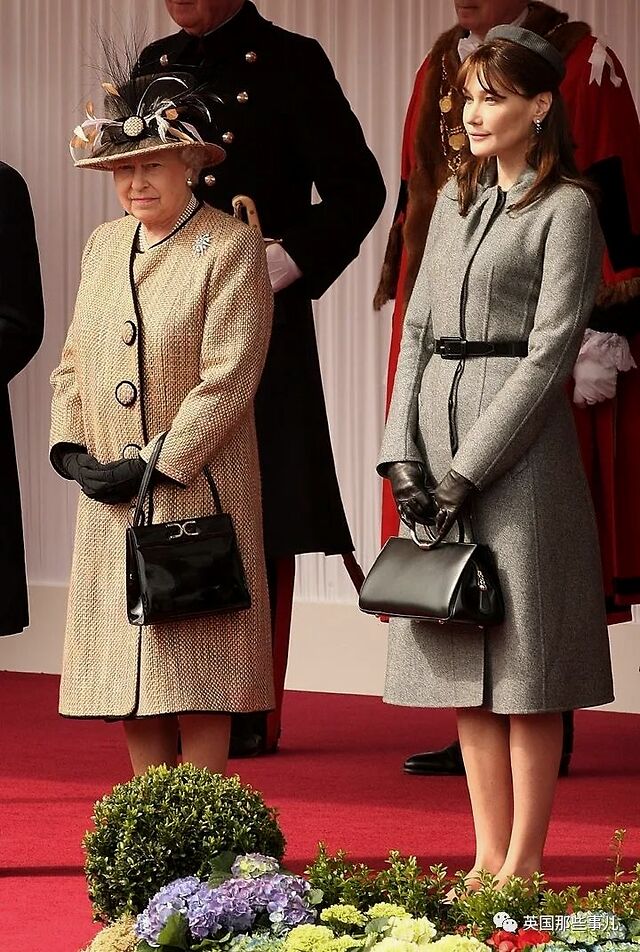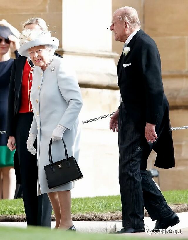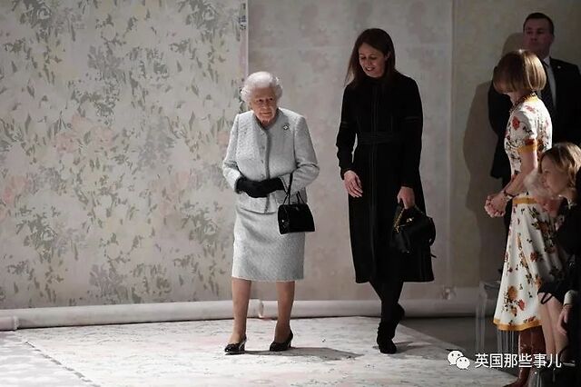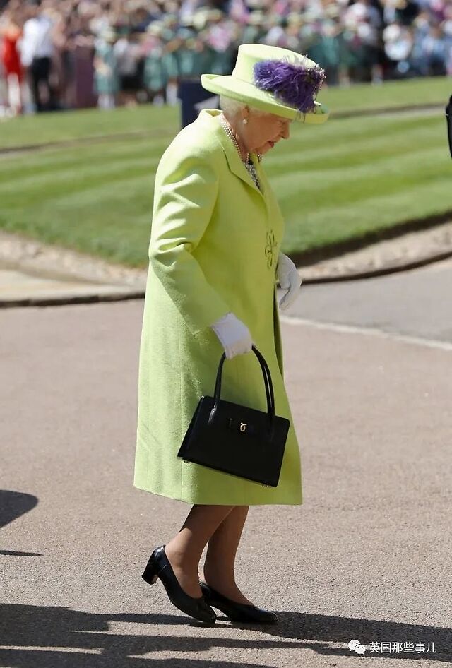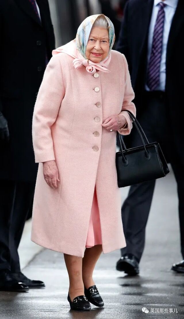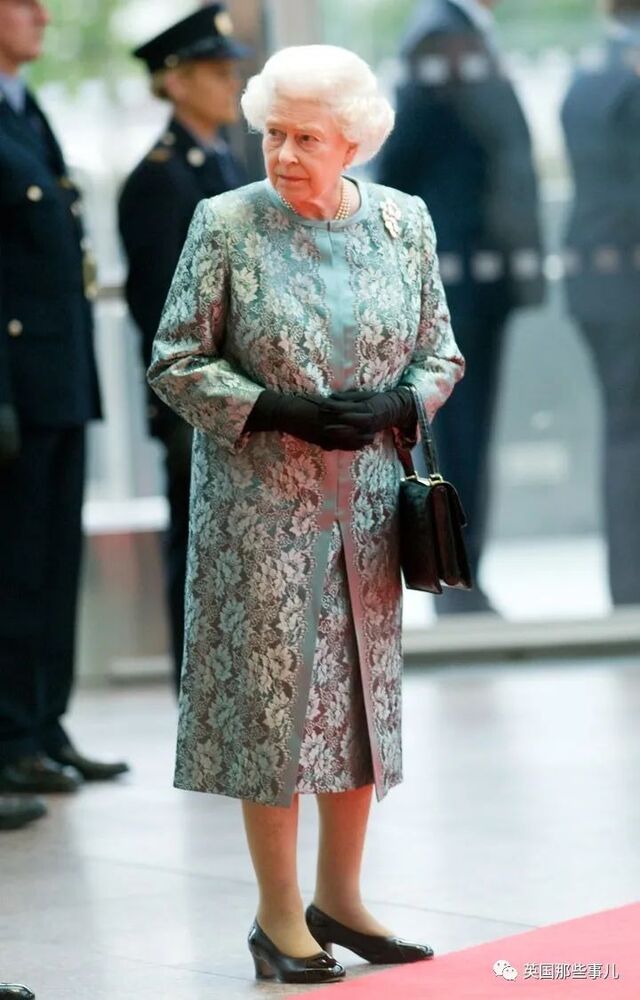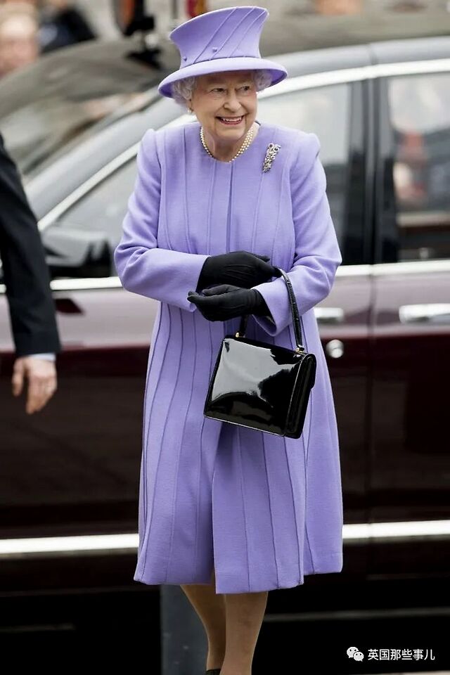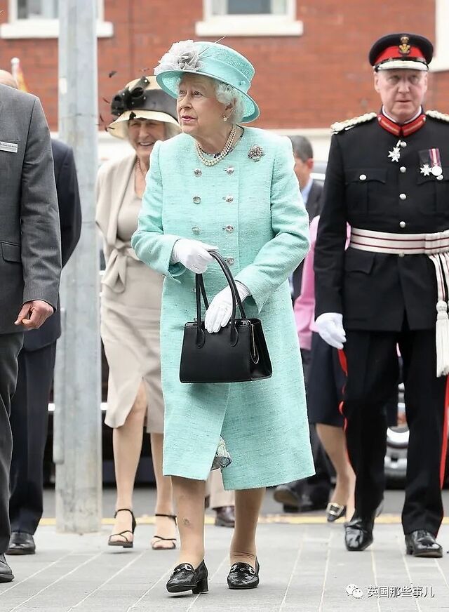 今日女王标志性的黑色手袋也开始被她拿在手中。