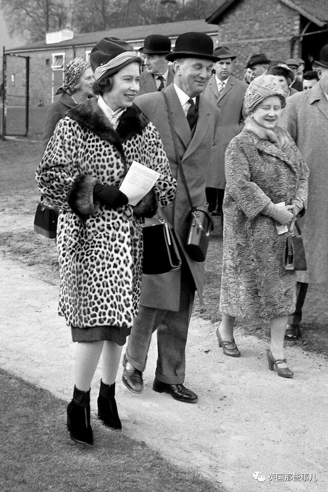 1962年3月,女王与母亲出席桑敦公园赛马会,她很罕见地身着豹纹大衣。
