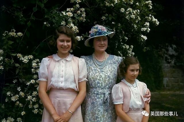 1941年7月8日,伊丽莎白和母亲、妹妹在温莎城堡的合影。