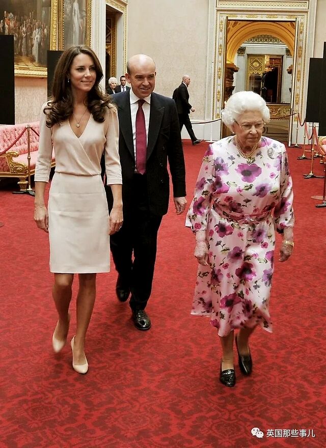 2011年7月22日,女王身穿粉色的碎花礼服,与凯特一同前往白金汉宫参观夏季展览。