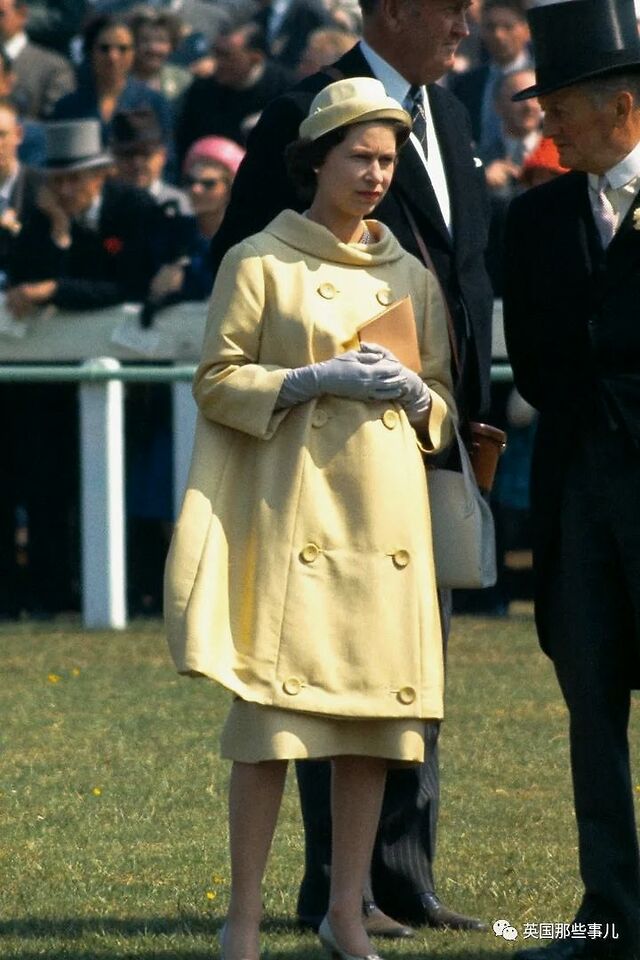 1960年1月,女王此时怀有安德鲁王子,她身穿柠檬黄的套装来到叶森马场。