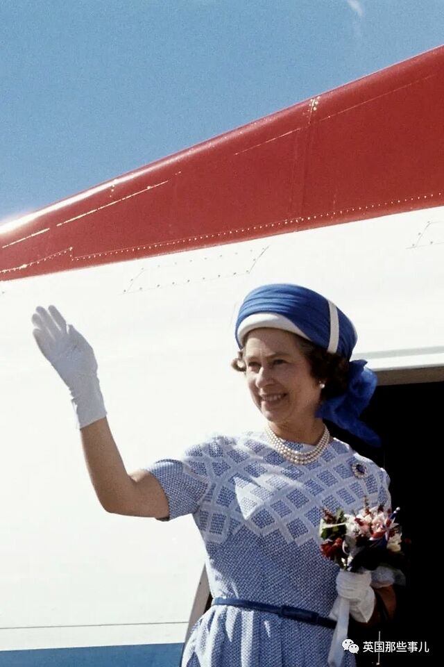 1977年2月,女王身穿蓝色礼服,戴着白色手套,挥别新西兰。