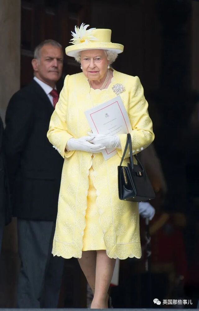 这一天,女王身穿Angela Kelly设计的黄色礼服外套,配上同色系的帽子,