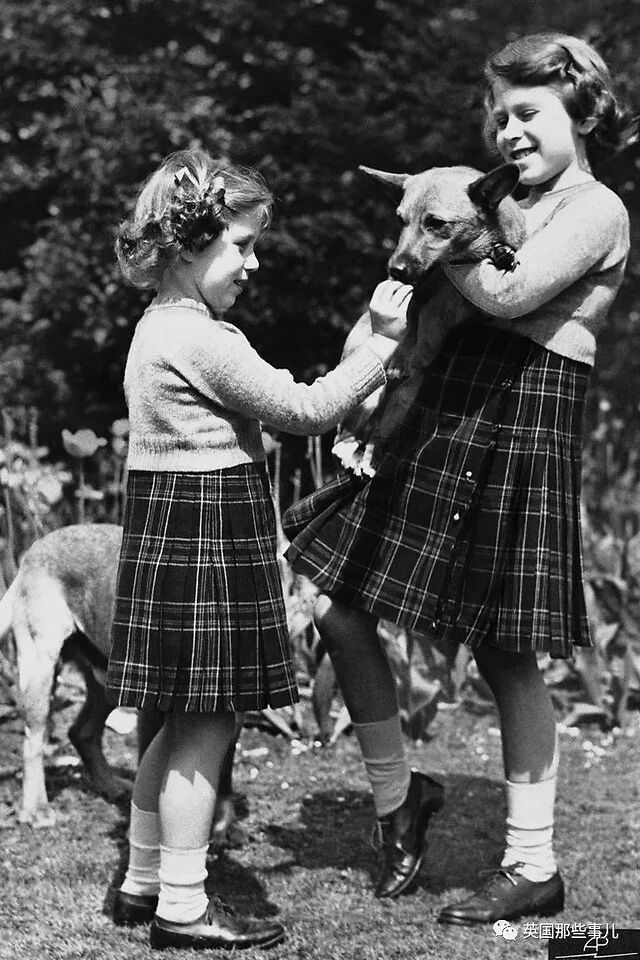 同样是1936年,10岁的伊丽莎白身穿高领礼服,抱着她最爱的柯基犬。