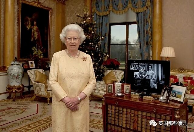 去年的圣诞,女王在温莎城堡,身着宝蓝色礼服,录制了圣诞讲话。
