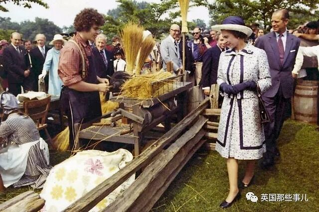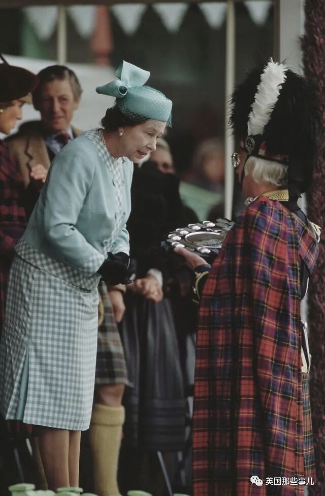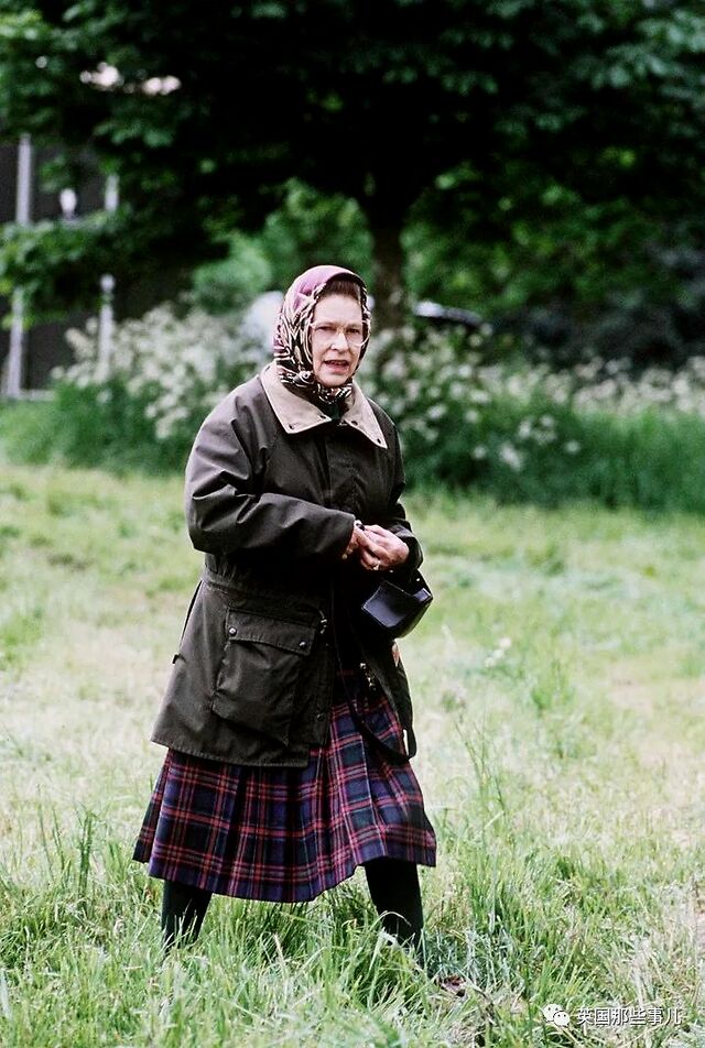 1972年9月,女王和菲利普亲王在银婚周年纪念日期间,在苏格兰巴尔莫勒尔庄园的一个农场参观。头巾和印花裙十分符合田园风情。