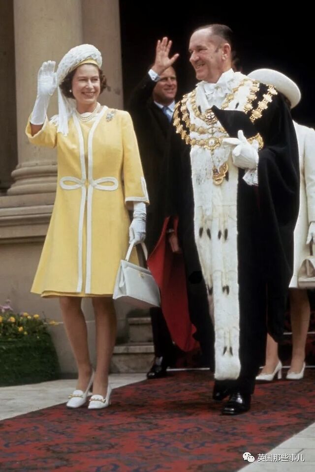 1970年4月,女王再度访问悉尼,身穿柠檬黄色大衣裙,以白色的配饰作为点缀。