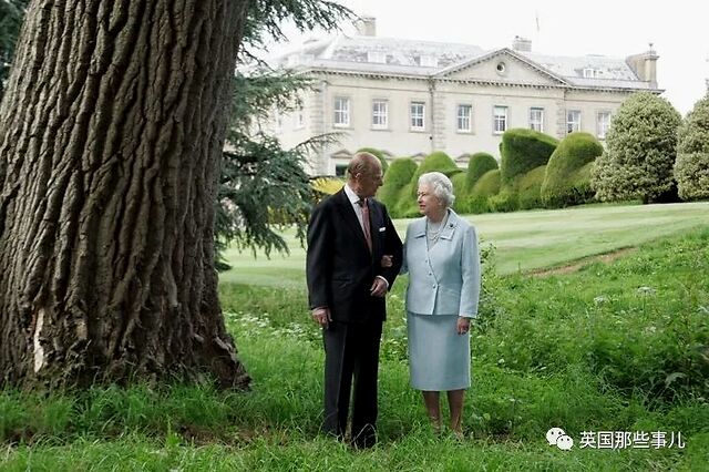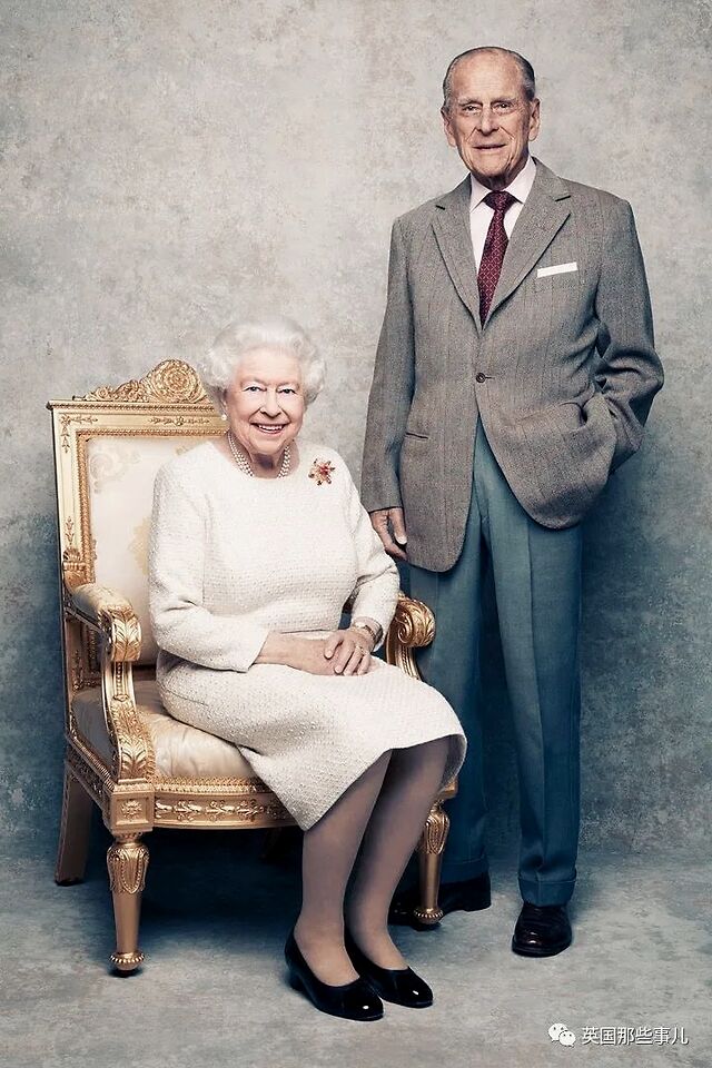 2017年11月,女王和菲利普亲王庆祝白金婚纪念日,拍了这张肖像照,女王还佩戴着丈夫在1966年赠送给她的Grima红宝石黄金胸针。