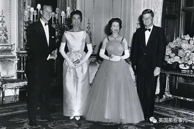 1961年6月5日,女王在白金汉宫,为时任美国总统美国肯尼迪举行宴会,依旧是身着Norman Hartnell的定制礼服。