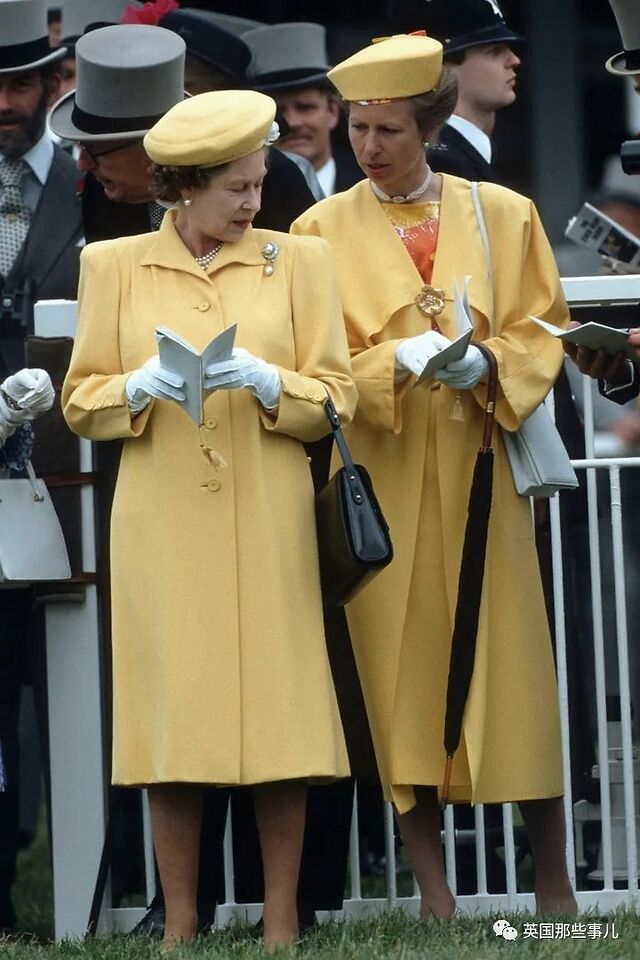 1968,安妮公主和女王在温莎的Frogmore球场上,一起给四岁的爱德华王子荡秋千。安妮选择了一件大胆的黄色短裙,而她的母亲则穿着一件淡雅的薄荷绿两件套裙装。