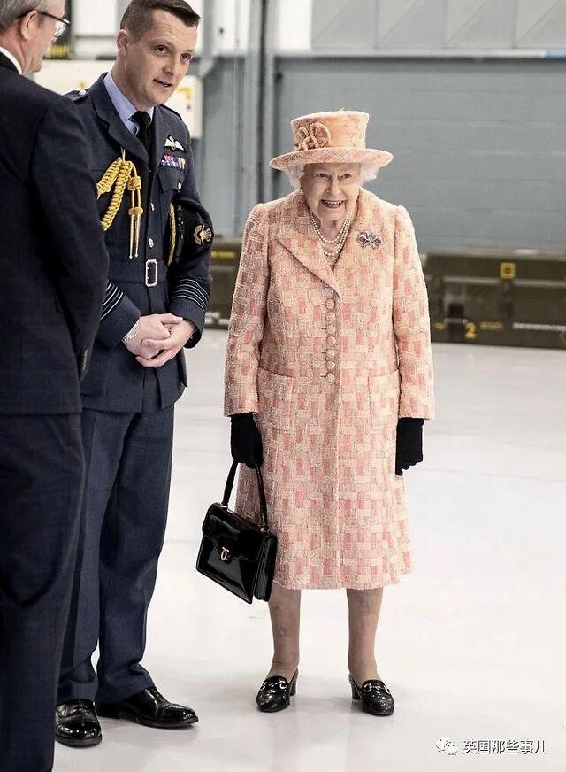 2月3日,女王穿上了一套桃粉色套装,参观皇家空军基地。