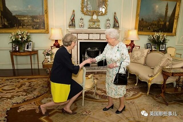 女王身穿花裙接待了梅姨,并正式任命她为英国新任首相,