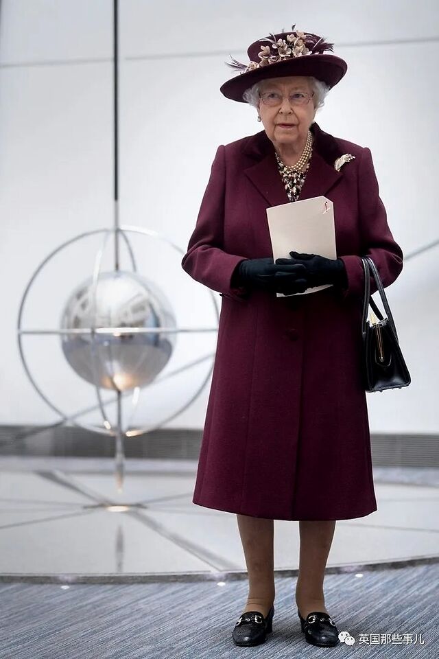 2020年2月25日,女王穿着一身酒红色的礼服,参观了位于伦敦泰晤士宫的军情五处总部。