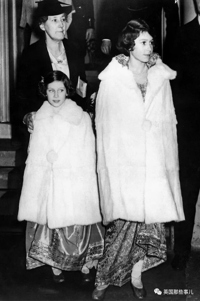 1939年3月,伊丽莎白和玛格丽特在伦敦参加完一个儿童派对后,都穿着晚礼服和白色斗篷。