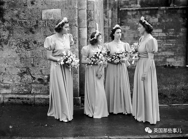 1946年,伊丽莎白在汉普郡出席婚礼,并担任伴娘,伴娘服是一条蓬蓬袖长裙。
