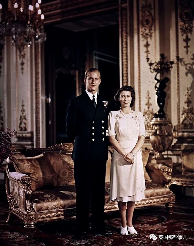 1947年7月10日,公主殿下宣布与菲利普订婚,她当时的装扮十分符合战后早期的时尚,身着淡粉色礼服,佩戴珍珠项链,脚踏蝴蝶结高跟鞋。