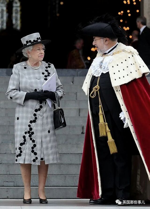 2009年10月9日,女王身穿贴花灰格子大衣,同款帽子和一抹紫红色的口红,出席在圣保罗大教堂举行的纪念仪式。