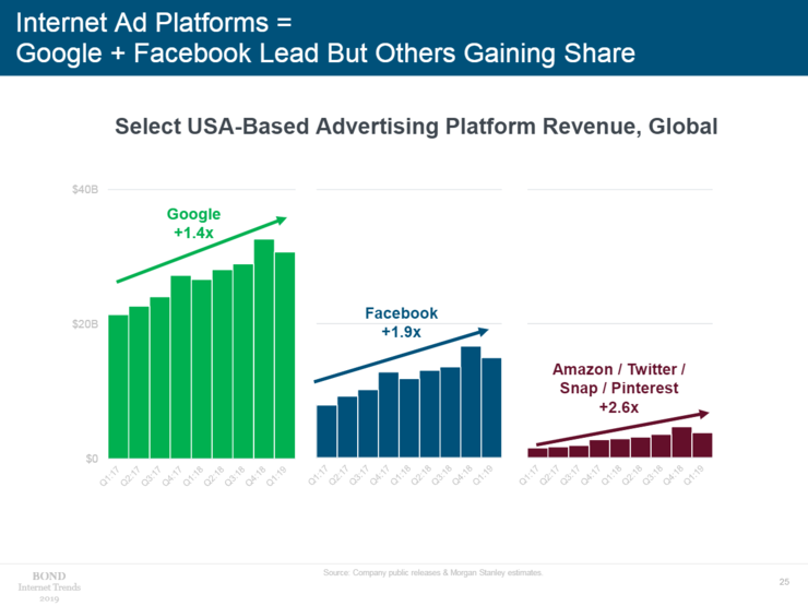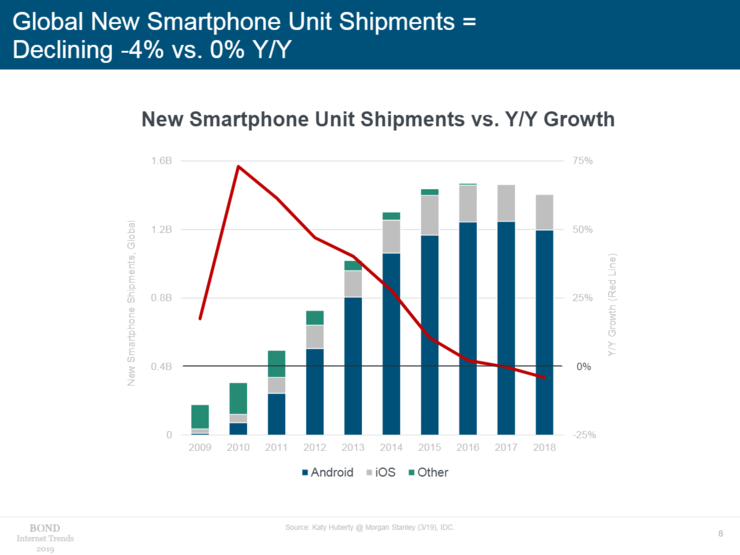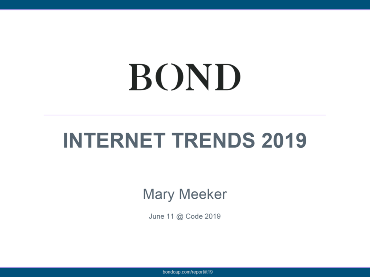 雷锋网消息,6 月11 日,素有“互联网女皇”之称的 Mary Meeker 在科技博客 Recode 举办的 Code Conference 上发布了 2019 年互联网趋势报告。