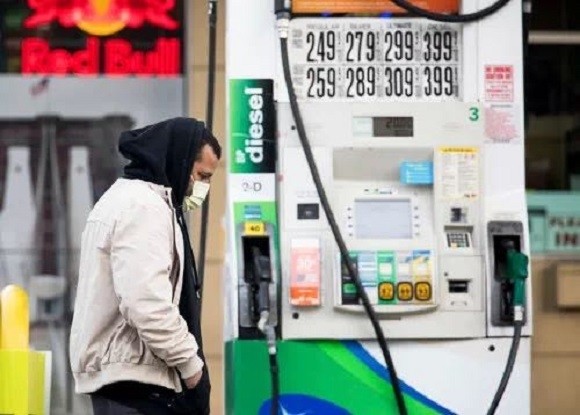 图片说明:4月20日,一名戴口罩的男子从美国纽约一家加油站油泵旁走过。(来源:新华社发郭克摄)