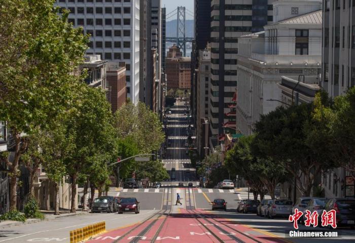 资料图:当地时间4月25日,美国旧金山街头冷冷清清。中新社记者 刘关关 摄