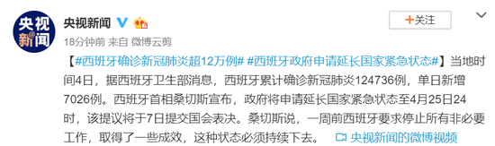 西班牙确诊新冠肺炎超12万例 西班牙政府申请延长国家紧急状态