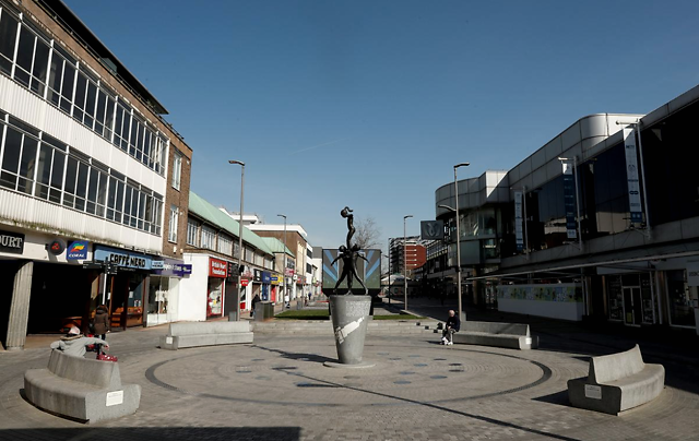 受新冠病毒的影响,英国赫默尔亨普斯特德一条的商业街十分空旷。(图源:路透社)
