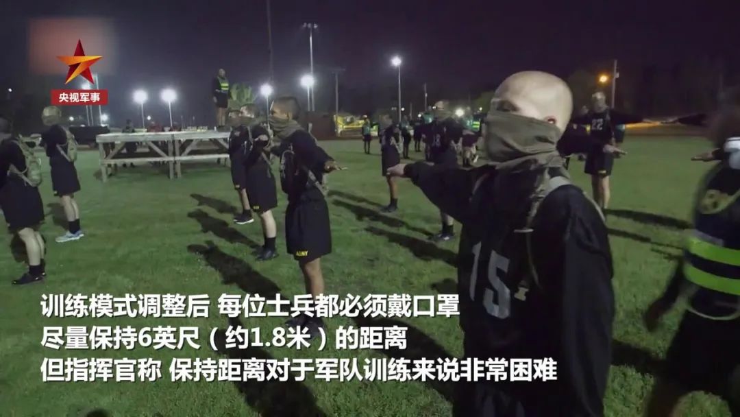训练模式调整后,每位士兵都必须戴口罩,在开始训练前先使用消毒液,并尽量保持6英尺、也就是大约1.8米的距离。