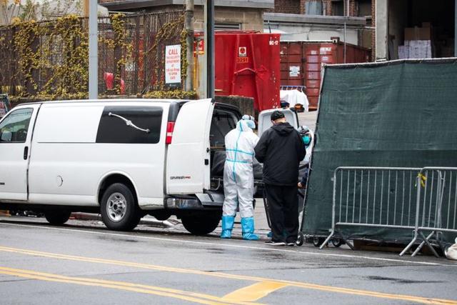 美国约翰斯·霍普金斯大学4月24日发布的新冠疫情最新统计数据显示,美国累计死亡病例突破5万例。图为当天在纽约布鲁克林区一家医院外,医院工作人员将尸体搬进殡葬公司的面包车。(新华社发 郭克摄)